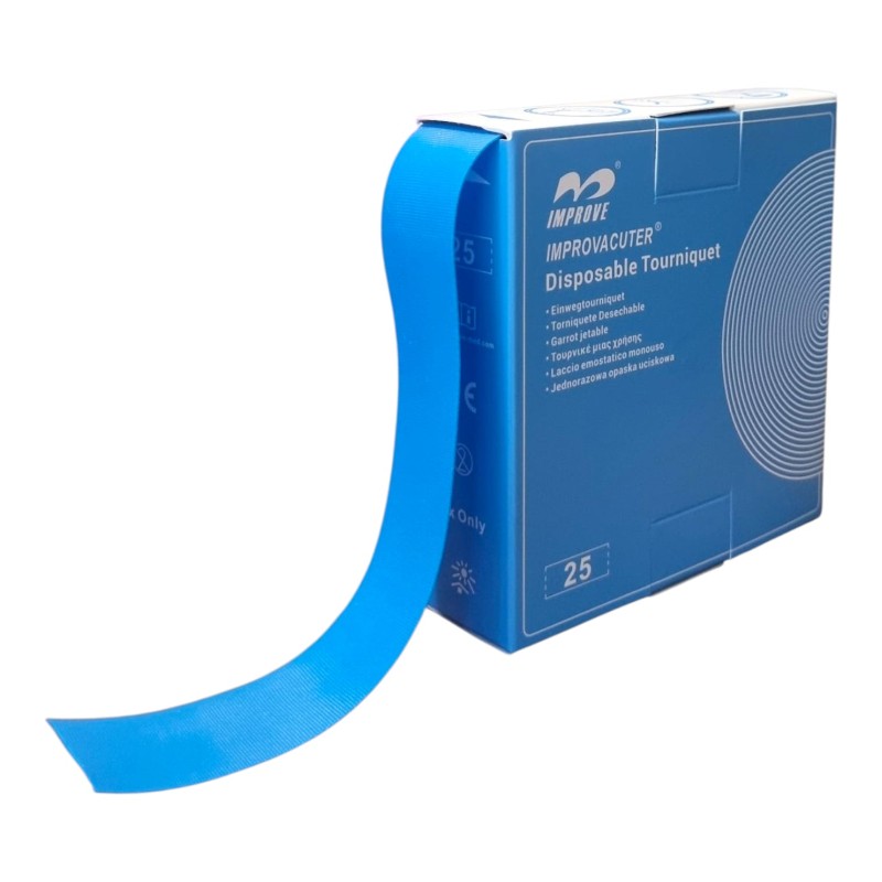 Staza bezlateksowa w rolce wykonana z szerokiego, rozciągliwego paska TPE. Produkt jednorazowego użytku, wytrzymały na rozciąganie, przeznaczony do wywołania zastoju żylnego i uwidocznienia żyły wybranej do nakłucia.