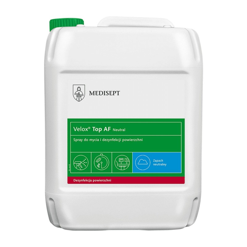 Velox® Top AF to alkoholowy płyn do mycia i szybkiej dezynfekcji małych powierzchni w obszarze medycznym (fotele zabiegowe, stoły operacyjne, aparatura medyczna oraz końcówki stomatologiczne przed procesem sterylizacji) – jako wyrób medyczny.