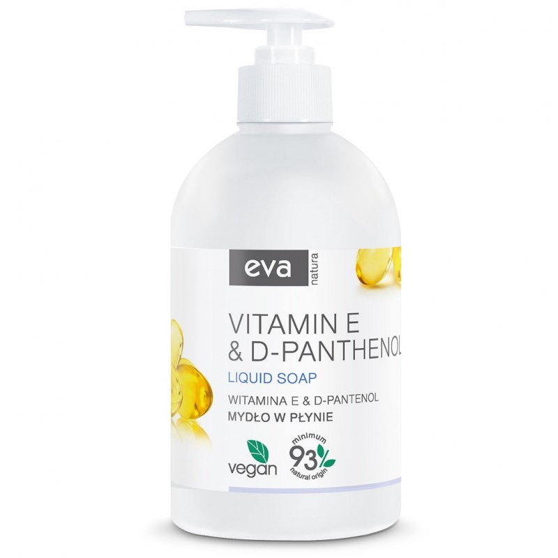 Eva Natura – mydło w płynie z witaminą E i D-pantenolem to kremowy preparat do mycia rąk, zamknięty w praktycznej butelce z pompką. Delikatnie oczyszcza skórę, jednocześnie ją pielęgnując i chroniąc przed niekorzystnym wpływem czynników zewnętrznych. Odpowiednie do każdego typu skóry, w tym także wrażliwej oraz podatnej na podrażnienia.