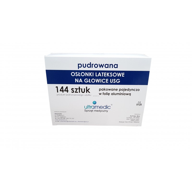 Zabezpieczające osłonki higieniczne na głowice sondy USG, pudrowane.