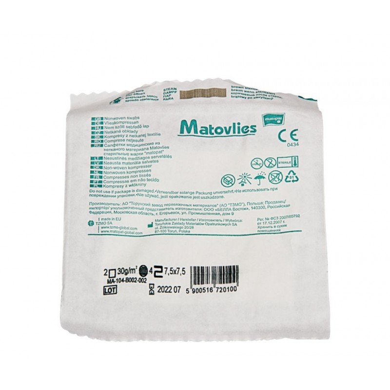 Kompresy włókninowe Matovlies służą do pochłaniania płynów w trakcie zabiegów ambulatoryjnych i operacyjnych. Są wolne od bakterii i innych mikroorganizmów. Cechują się spoistą strukturą.