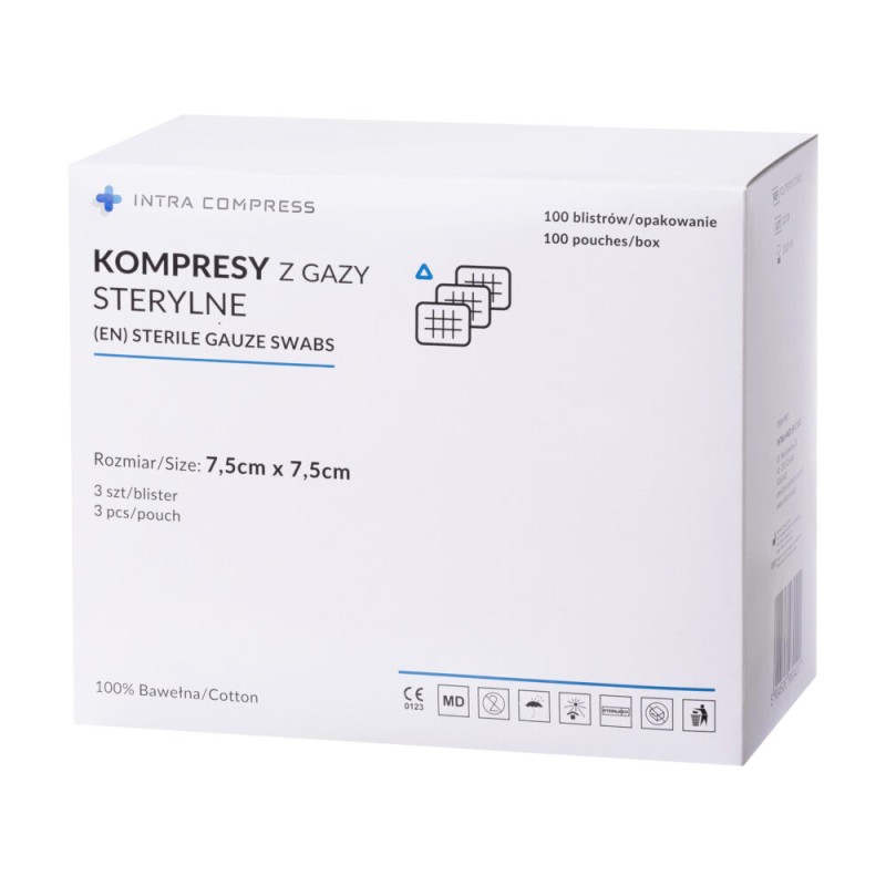 Kompresy gazowe Intra Compress to produkty wykonane ze 100% wysokiej jakości bawełny bielonej metodą bez chlorową.