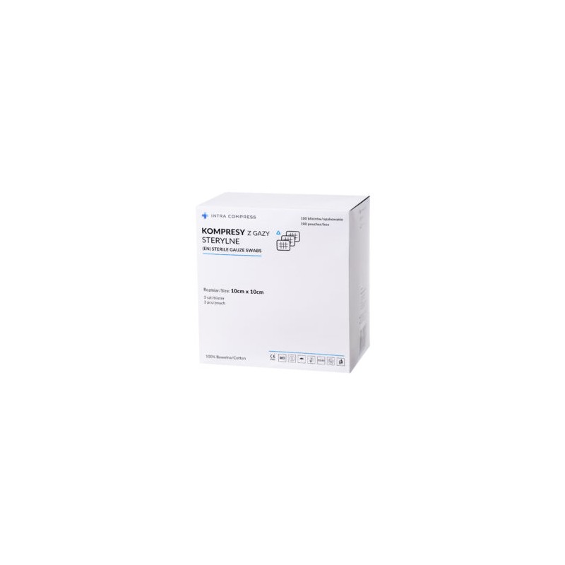 Kompresy gazowe Intra Compress to produkty wykonane ze 100% wysokiej jakości bawełny bielonej metodą bez chlorową.