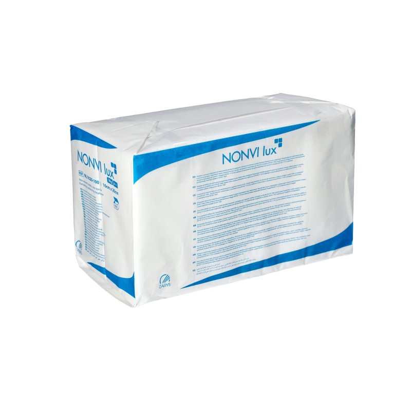 NONVI LUX to 4-warstwowy kompres z hydrofilowej włókniny medycznej o gramaturze 30G, przeznaczony do ogólnego opatrywania ran w warunkach ambulatoryjnych, na blokach operacyjnych, czy oddziałach zabiegowych.