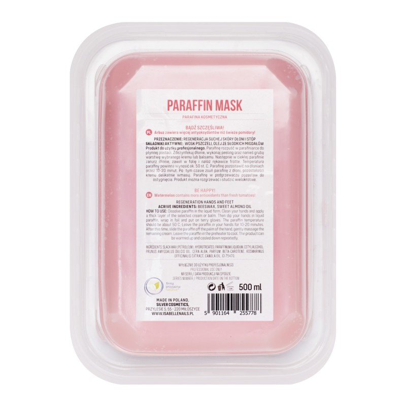Parafina kosmetyczna isabellenails jest idealnym uzupełnieniem codziennej pielęgnacji skóry dłoni i stóp, zawiera emolienty oraz susbtancje aktywne - olej ze słodkich migdałów oraz wosk pszczeli, dzięki którym skóra jest niezwykle gładka i odżywiona.
