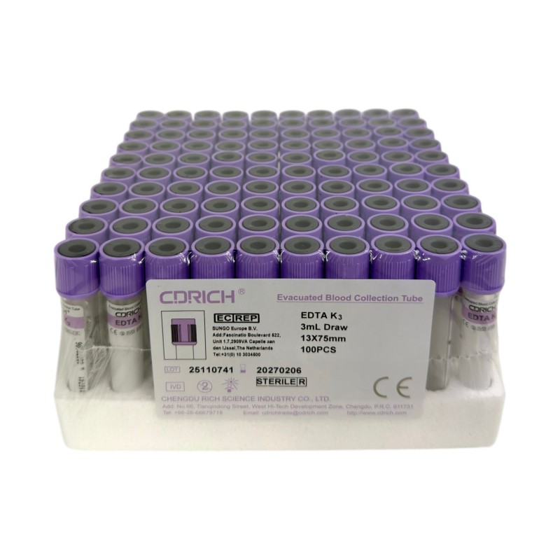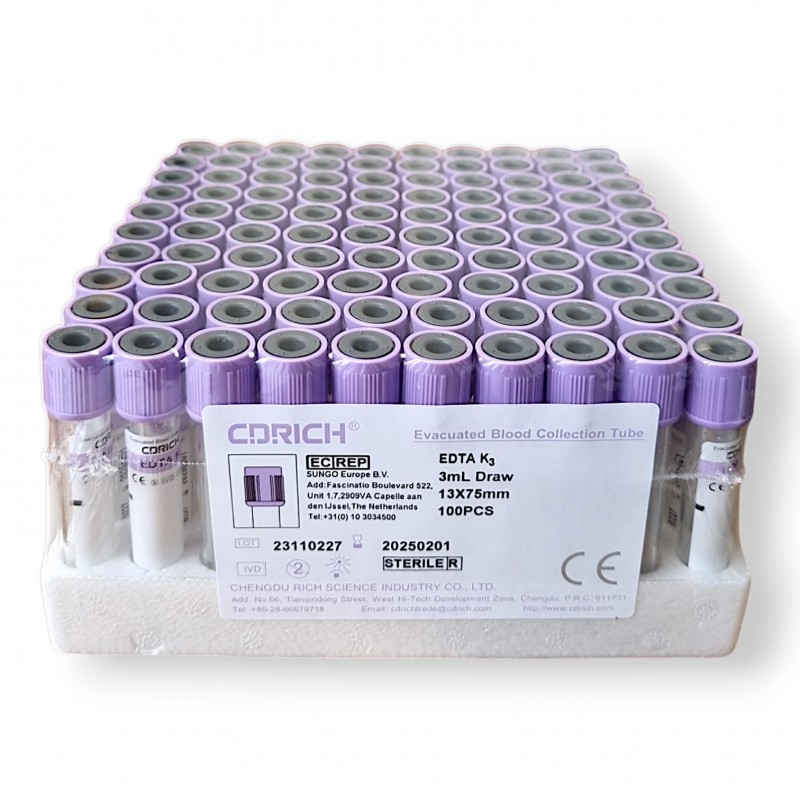 plastik | 13×75 mm | 3 ml | bezpieczny/fioletowy | papierowa | EDTA K3 | 100/1000 szt. |