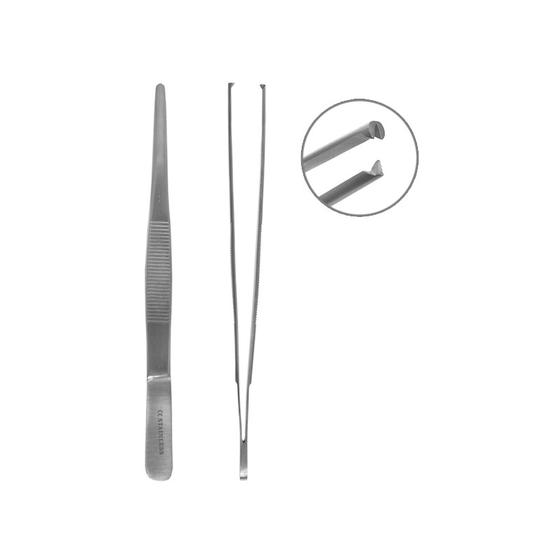 Ogólne zastosowanie: umożliwia mocne podtrzymanie tkanek (skóry, powięzi i mięśni). Na zakończeniu jednego ramienia znajduje się ząbek, odpowiadający przy zamknięciu pincety wcięciom na drugim ramieniu.