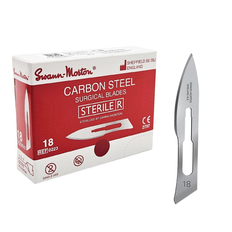Ostrze chirurgiczne nr. 18 ze stali nierdzewnej do skalpela. Znajduje zastosowanie nie tylko podczas zabiegów chirurgicznych i stomatologicznych. Bardzo dobrze sprawdzają się podczas usuwania zrogowaciałego naskórka na stopach ze względu na wysoki stopień ostrości.