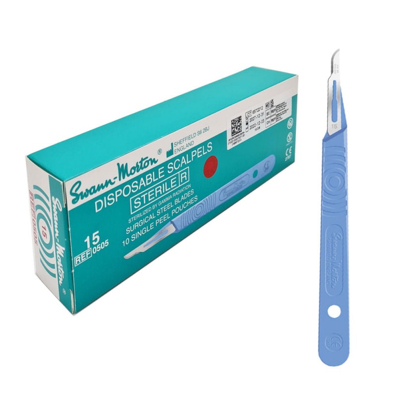 Ostrze chirurgiczne nr, 15 ze stali nierdzewnej o trójkątnym kształcie. Naostrzone wzdłuż jego najdłuższej krawędzi, dodatkowo wyposażone w mocną, szpiczastą końcówkę.