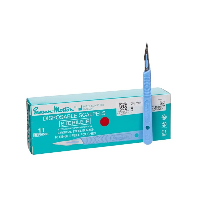 Ostrze chirurgiczne nr. 11 ze stali nierdzewnej o trójkątnym kształcie. Naostrzone wzdłuż jego najdłuższej krawędzi, dodatkowo wyposażone w mocną, szpiczastą końcówkę.