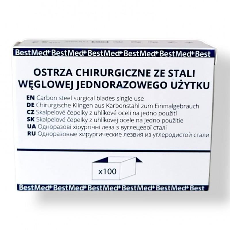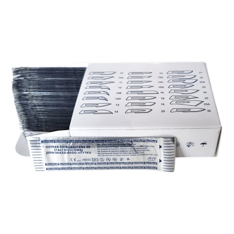 Ostrze chirurgiczne nr. 10 wykonane ze stali węglowej jednorazowego użytku.