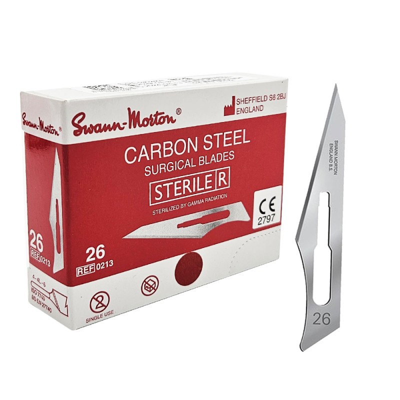 Ostrze chirurgiczne nr. 26 ze stali nierdzewnej do skalpela. Znajduje zastosowanie nie tylko podczas zabiegów chirurgicznych i stomatologicznych. Bardzo dobrze sprawdzają się podczas usuwania zrogowaciałego naskórka na stopach ze względu na wysoki stopień ostrości.