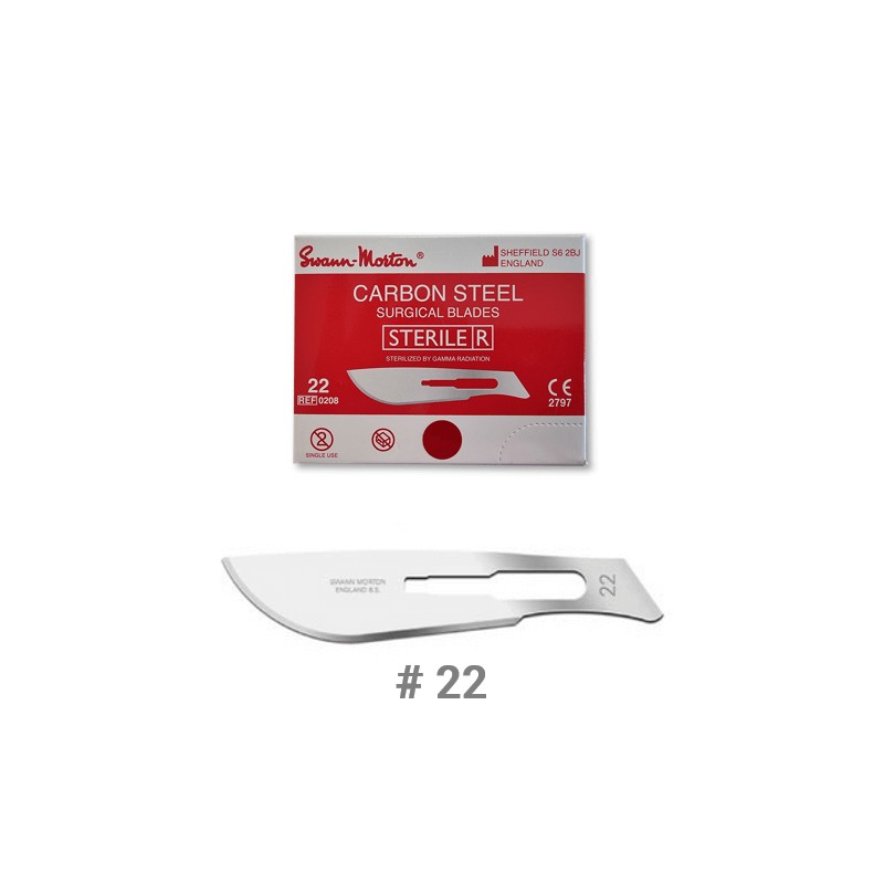 Ostrze chirurgiczne nr. 22 ze stali nierdzewnej do skalpela. Znajduje zastosowanie nie tylko podczas zabiegów chirurgicznych i stomatologicznych. Bardzo dobrze sprawdzają się podczas usuwania zrogowaciałego naskórka na stopach ze względu na wysoki stopień ostrości.