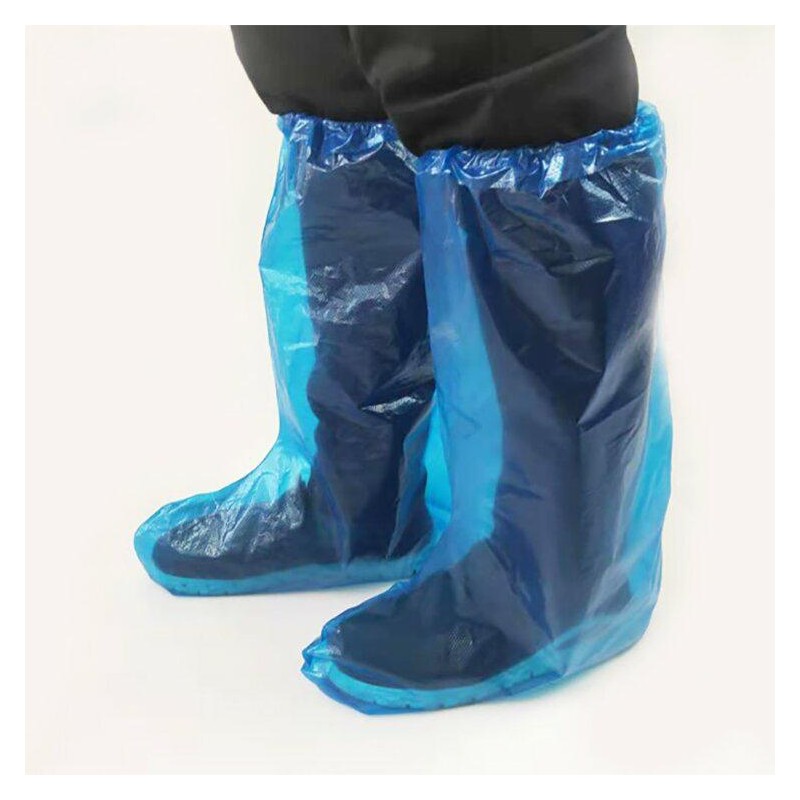 Osłony na buty z folii PE w kolorze niebieskim o długości 48cm i grubości 0,04mm, chroniące przed zachlapaniami w przetwórstwie spożywczym, laboratoriach oraz w służbie zdrowia.