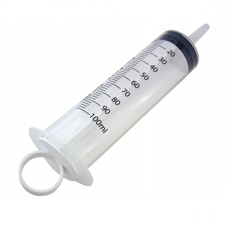 Strzykawka cewnikowa Żaneta 100ml z dwiema końcówkami Luer Lock. Dzięki przezroczystemu cylindrowi umożliwia bardzo dobrą widoczność zawartości strzykawki co sprawia, że dawkowanie leku jest precyzyjne.