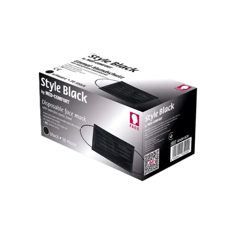 Maseczka chirurgiczna 4W Ampri Med-Comfort z gumką typ IIR, z włókniny, czarna, 50szt./op.