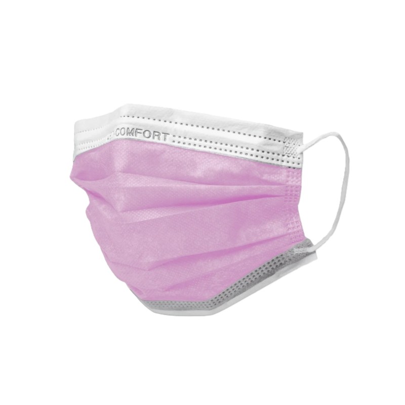 Maseczka chirurgiczna 3W Ampri Med-Comfort z gumką typ IIRz włókniny, różowa, 50szt./op.