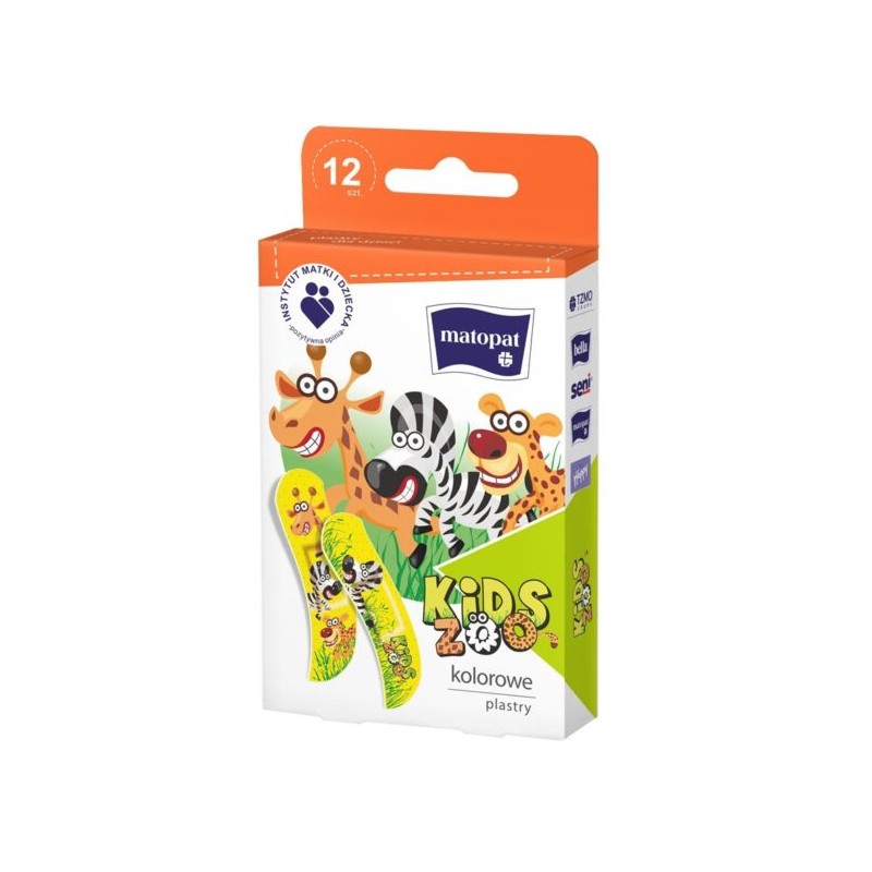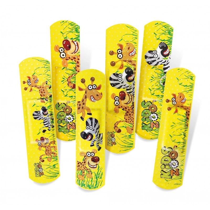 Zestaw kolorowych plastrów z opatrunkiem dla dzieci Kids Zoo stosowany jest do opatrywania drobnych skaleczeń i otarć. Kolorowe zwierzątka odciągają wzrok dzieci od skaleczenia.