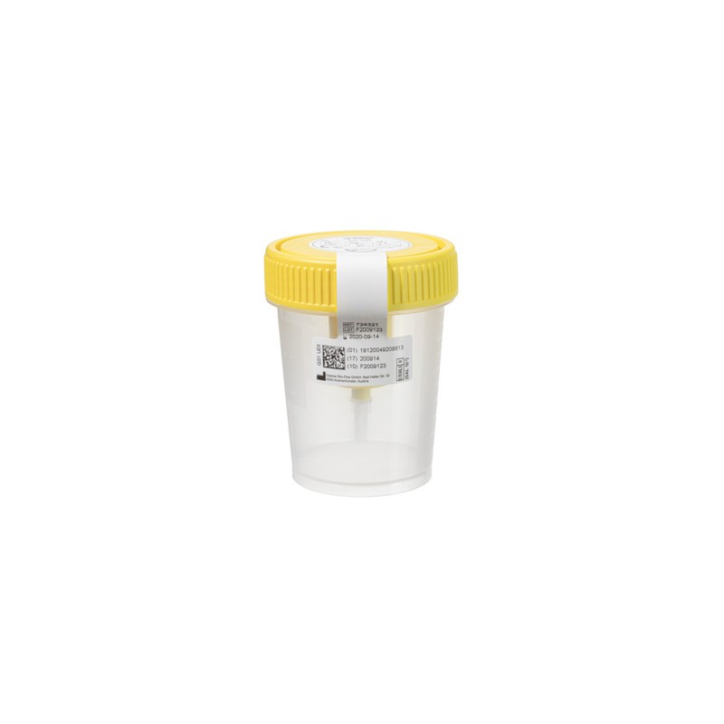 Pojemnik na mocz ze zintegrowanym urządzeniem do przenoszenia umożliwia bezpieczne pobranie i przetransportowanie próbek moczu do wskazanego miejsca przeznaczenia.
