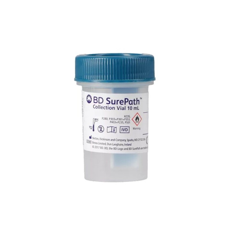 Pojemnik BD SurePath™ 10 ml to nowoczesne rozwiązanie w diagnostyce cytologicznej, zapewniające wysoką jakość próbek i zwiększoną wykrywalność zmian przednowotworowych oraz nowotworowych szyjki macicy. Pojemnik służy do pobierania i transportu materiału cytologicznego w ramach badań przesiewowych w kierunku raka szyjki macicy. Stosowany w metodzie cytologii na podłożu płynnym (LBC), umożliwia jednoczesne przeprowadzenie testu PAP oraz dodatkowych badań molekularnych, takich jak wykrywanie wirusa HPV.