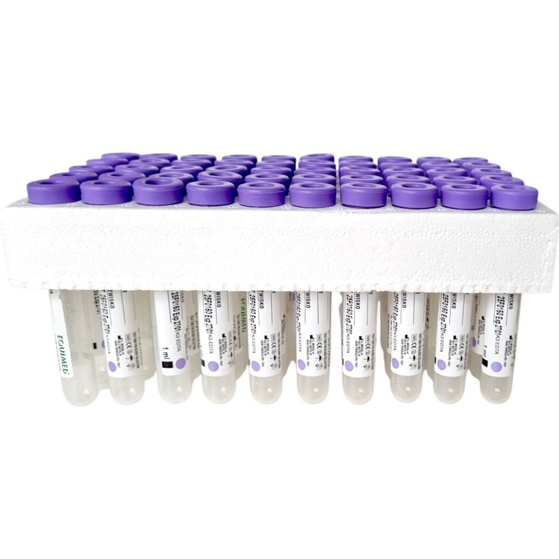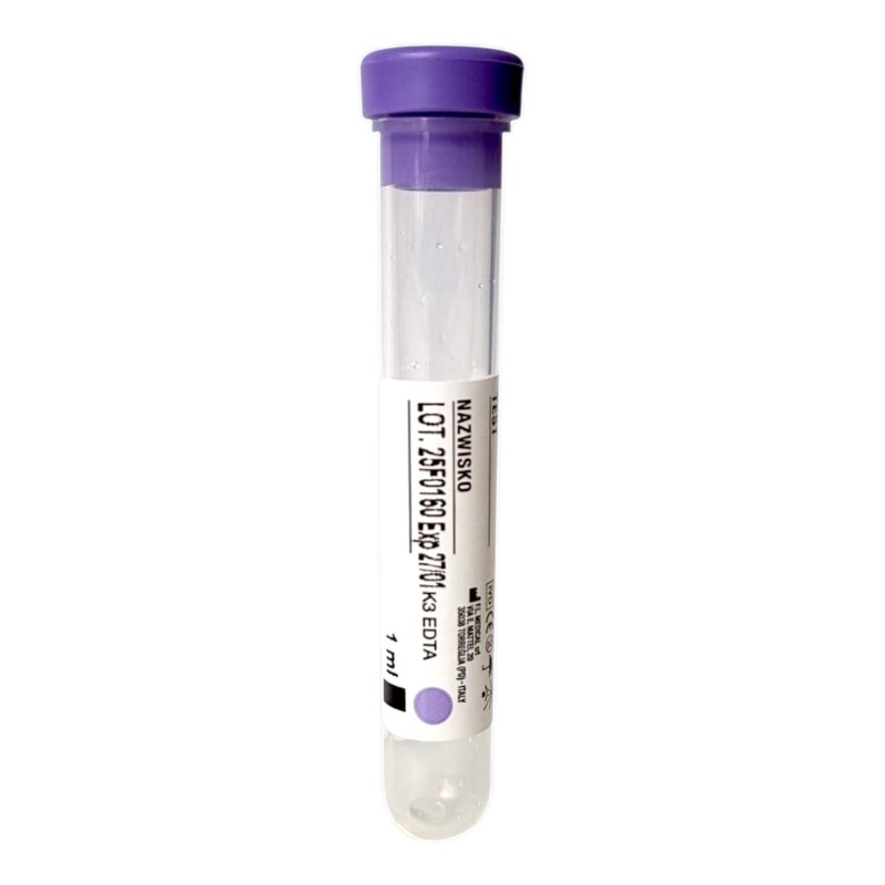 | Polipropylen | 13x75 mm | 1ml | bezpieczny/fioletowy | papierowa | EDTA K3 | 50szt. |