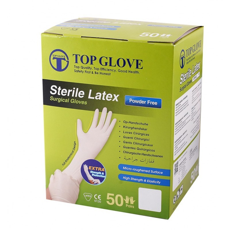 Nowość Rękawice chirurgiczne lateksowe bezpudrowane TOP GLOVE, 1para Zobacz większe