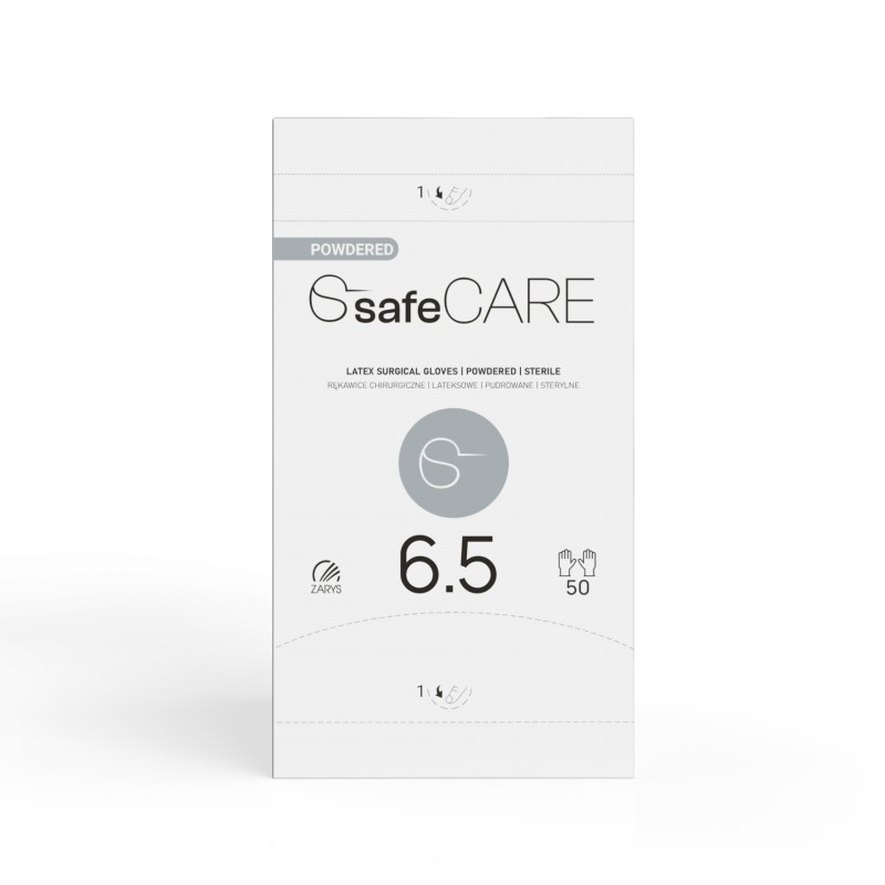 Rękawice chirurgiczne lateksowe SafeCare PF (rozm.6.5) - bezpudrowe, jałowe, 1 para