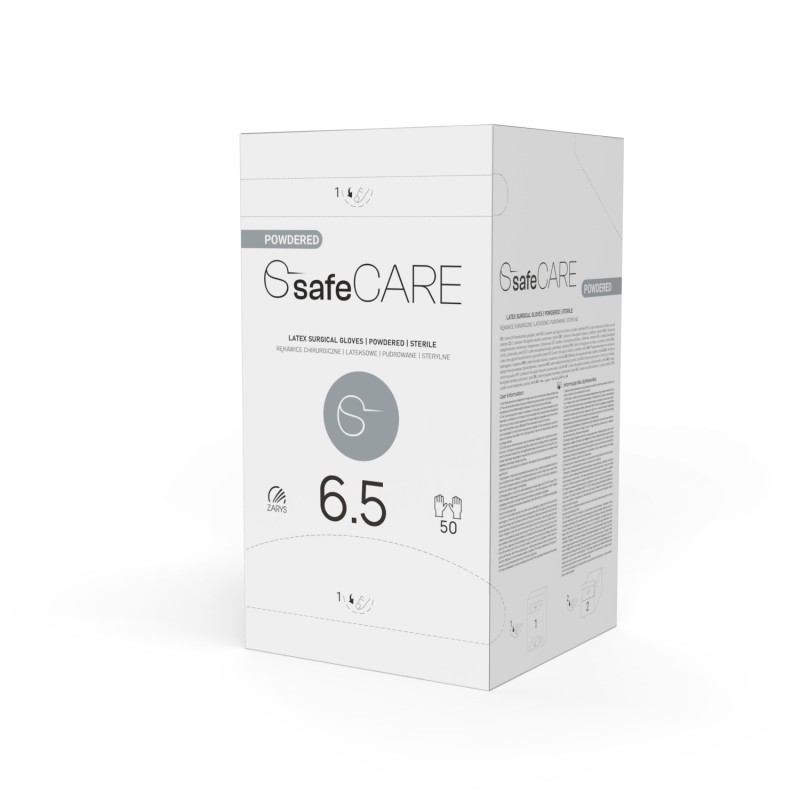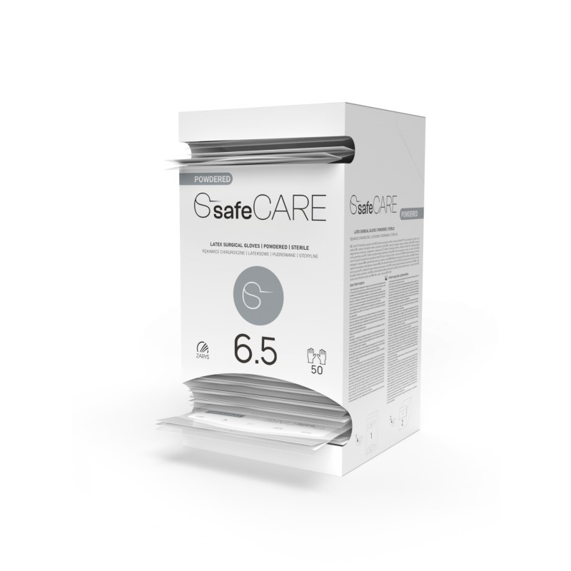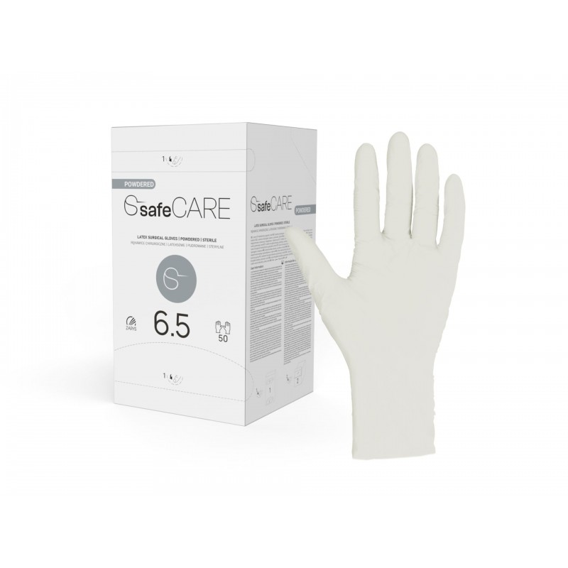Rękawice chirurgiczne lateksowe SafeCare (rozm.6.5) - pudrowane, jałowe, 1 para