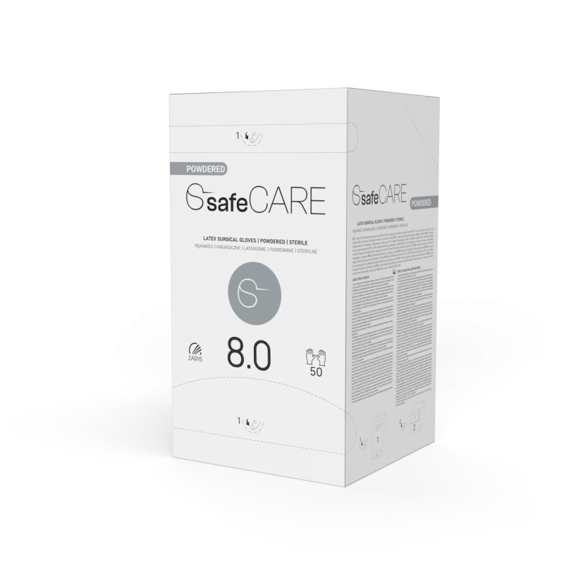 Rękawice chirurgiczne lateksowe SafeCare (rozm.8.0) - pudrowane, jałowe, 1 para