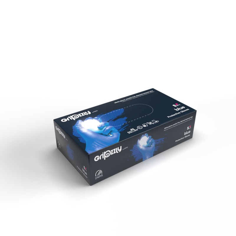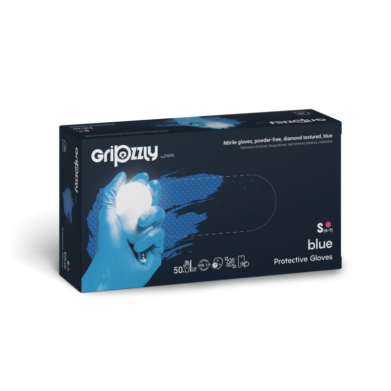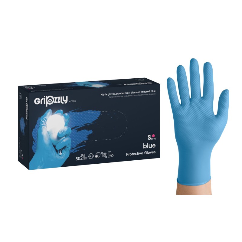 Rękawice nitrylowe PF GRIPZZLY Niebieskie (Rozm. S), wzmocnione z diamentową teksturą, 50szt./op.