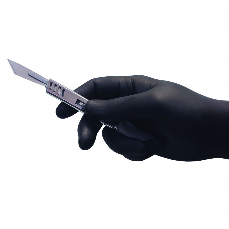 Najwyższej jakości ochronne rękawice nitrylowe w czarnym kolorze. Duży komfort użytkowania. Przeznaczone dla osób pracujących w służbie zdrowia, salonach kosmetycznych, salonach tatuażu oraz w wielu innych branżach.