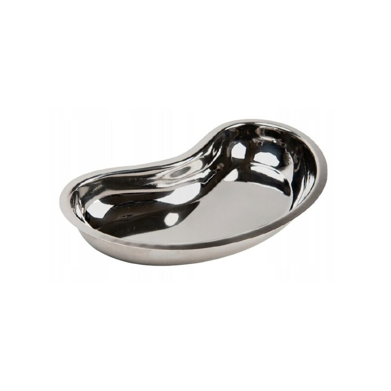 Miska metalowa w kształcie nerki, wykonana z wysokiej klasy stali chirurgicznej. Produkt wielokrotnego użytku, przeznaczony do przechowywania materiałów zużywalnych lub do dezynfekcji narzędzi w gabinetach lekarskich