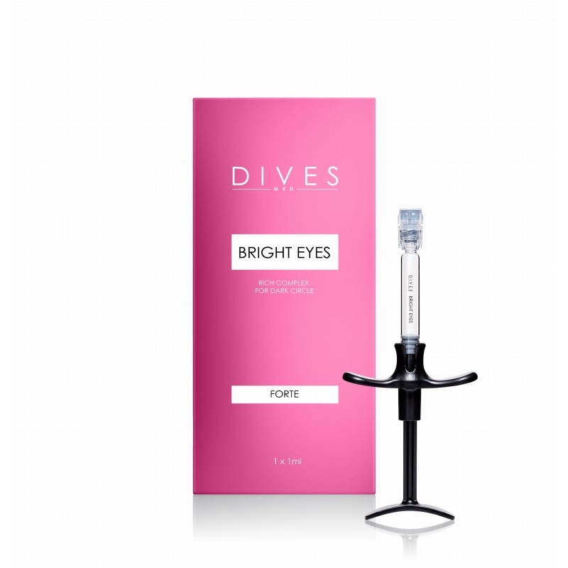 DIVES med. Bright Eyes Forte to innowacyjny stymulator peptydowo-polipeptydowy opracowany z myślą o wszechstronnej pielęgnacji wrażliwej skóry wokół oczu, szczególnie podatnej na cienie, opuchnięcia i objawy zmęczenia. Preparat działa wielopoziomowo na problemy okolicy oka dzięki wyjątkowemu połączeniu czterech biomimetycznych peptydów, które ograniczają przepuszczalność naczyń włosowatych, zmniejszają ilość nagromadzonych barwników pochodzenia krwi oraz stymulują syntezę kolagenu.
