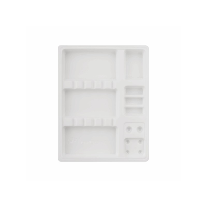 Posiadają specjalne przegródki na wiertła, gumki, narzędzia oraz wgłębienia na wszelakiego rodzaju płyny, materiały, wypełnienia, które po każdym pacjencie zostają od razu wyrzucone wraz z tacką.